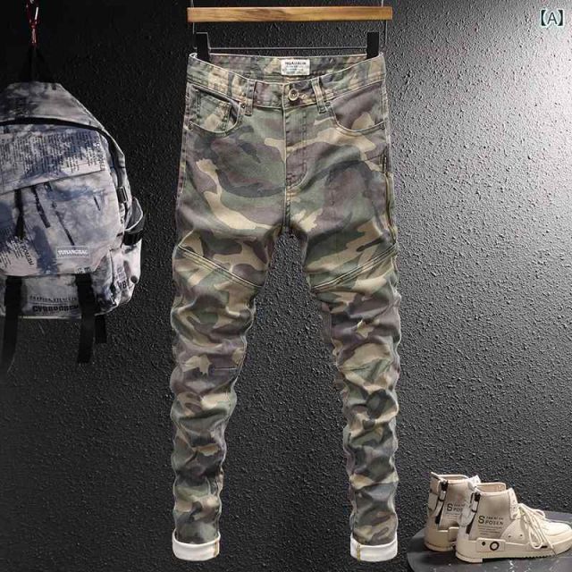 商品名:[32 ]メンズ ファッション 服 オシャレ シンプル 大人 かっこいい 大きいサイズ ストリート 紳士服 秋 ハイエンド 迷彩 ジーンズ 韓国スタイル ヒップ ホップ カジュアル ストレッチ スリム フィート