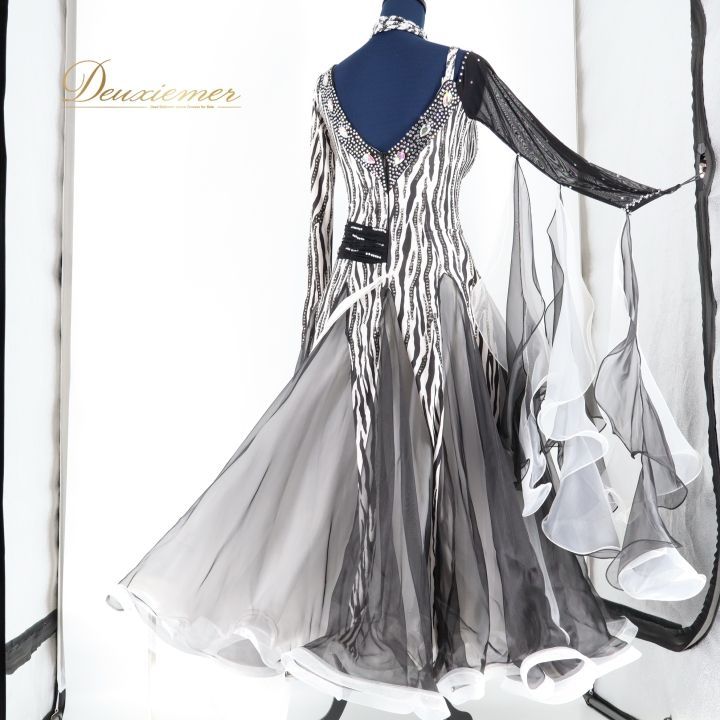 社交ダンス 衣装 ドレス ワンピース フロート ゼブラ 柄 模様 デモ 競技 ダンス パーティ 発表会 ブラック系 ホワイト系 Wish plus スカート ふんわり エレガント おしゃれ 競技用 パーティー 発表会用