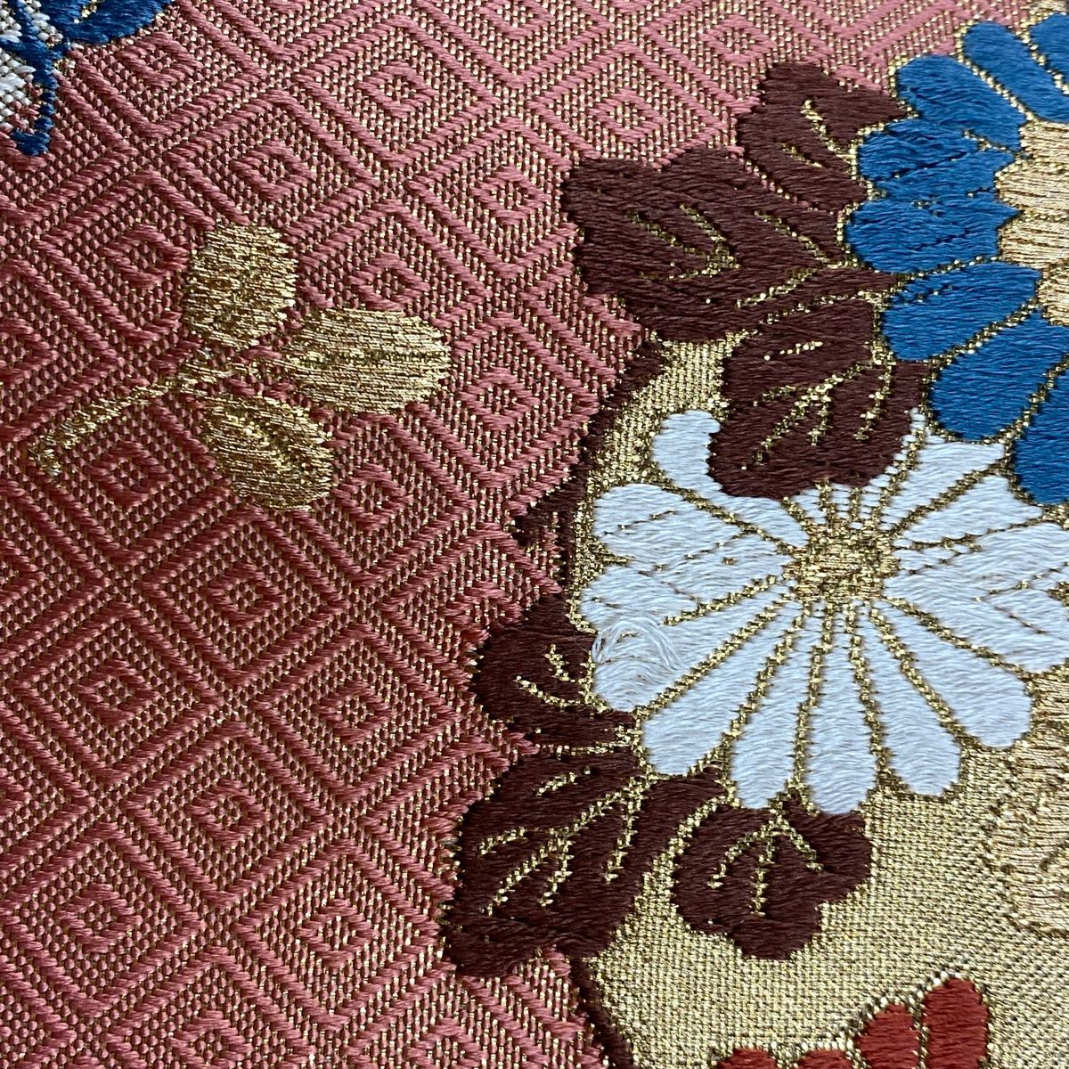 袋帯 秀品 花丸文 菊 唐織 箔 金色 六通 正絹