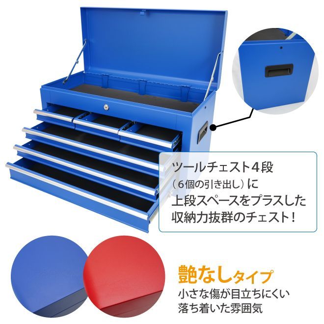 ツールチェスト 収納ボックス 4段 6引き出し ブルー レッド 艶なし マット ツールキャビネット ツールボックス トップチェスト キャビネット 工具箱 KIKAIYA