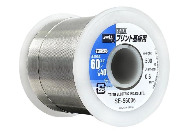 スタイル:プリント基板用◆商品名:太洋電機産業(goot)鉛入りはんだφ0.6スズ60%/鉛40%500gリール巻ヤニ入りSE-56006日本製