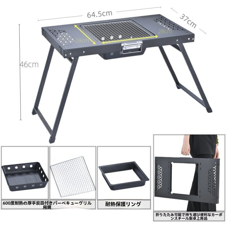 バーベキュー、焚火、茶煮の3役をこなす: バーベキューを楽しむだけでなく、焚火を囲んだり、お茶を煮るためのテーブルとしても使えます。