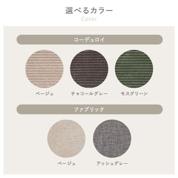 ベージュ、チャコールグレー、モスグリーン