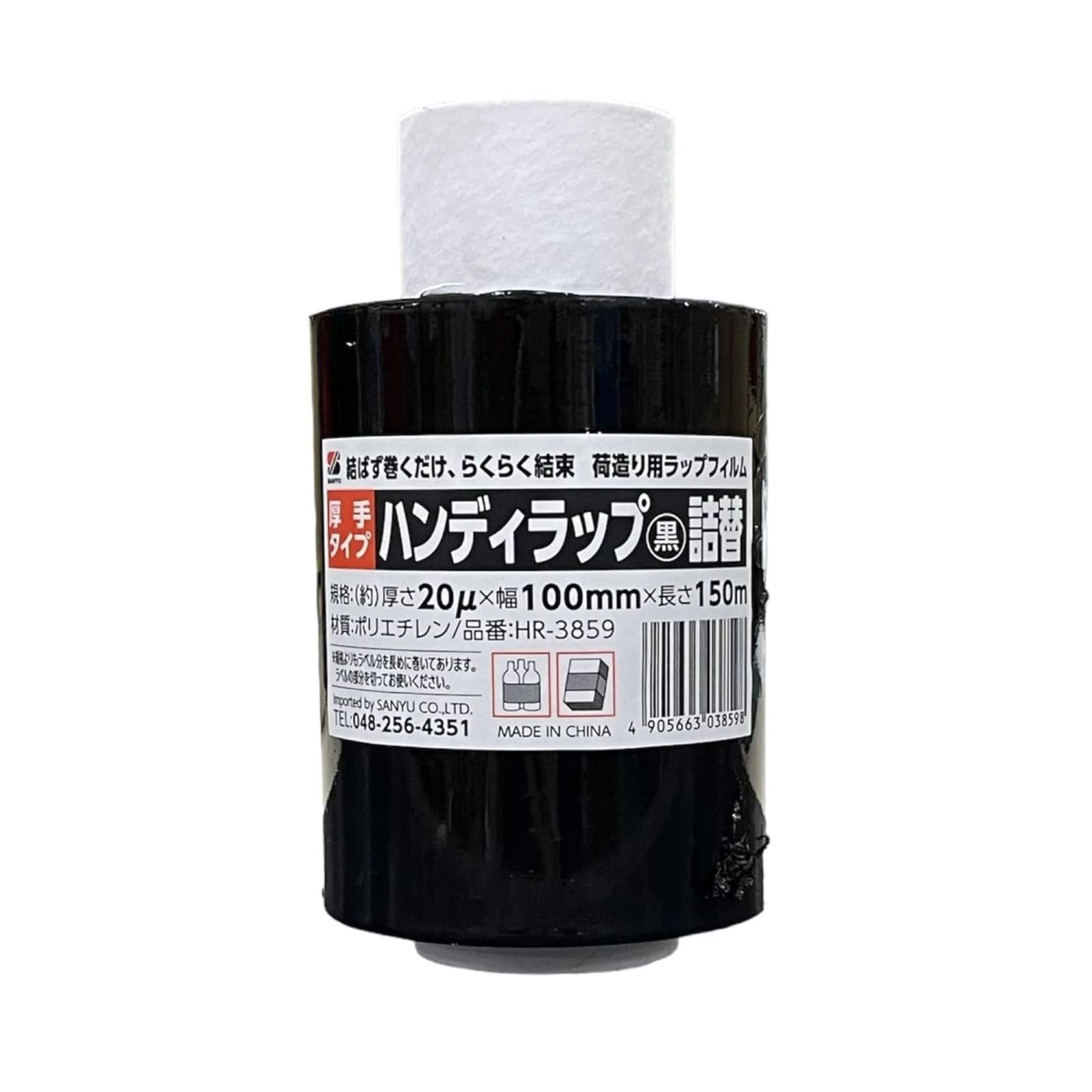 三友産業 ハンディラップ 黒 詰め替え 幅100 mm 長さ150 m 厚み20μ 梱包 結束 段ボール ラップ ロール ハンディ HR 3912 24巻セット