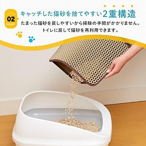・【キャッチした猫砂を捨てやすい2重構造】たまった猫砂を戻しやすいから掃除の手間がかかりません。トイレに戻して猫砂を再利用できます。
