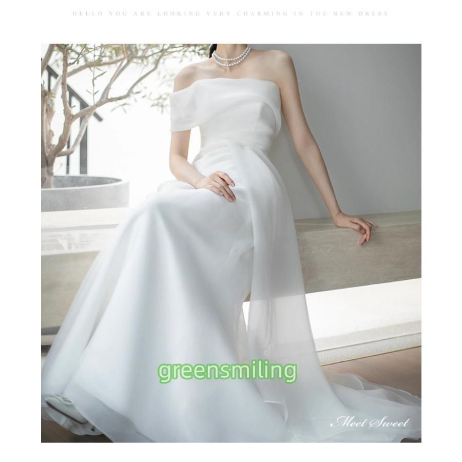 ウェディングドレス ロングドレス マーメイドライン オフショルダー 二次会 結婚式 前撮り 花嫁 ウエディングドレス サテン 挙式 韓国風 ブ