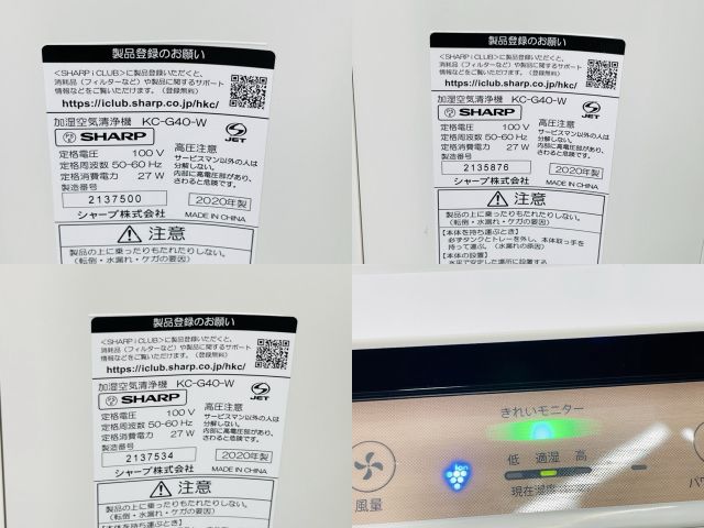 シャープ 加湿空気清浄機 3台セット SHARP KC-G 40-W 2020年製 プラズマクラスター 301594