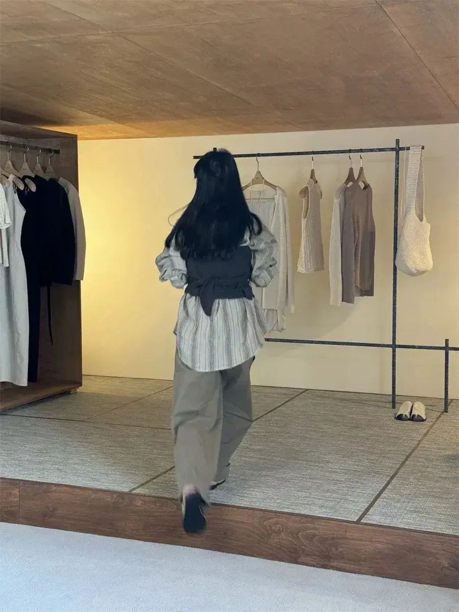 春から秋にかけて着れる薄手の素材で、ナチュラルな色です