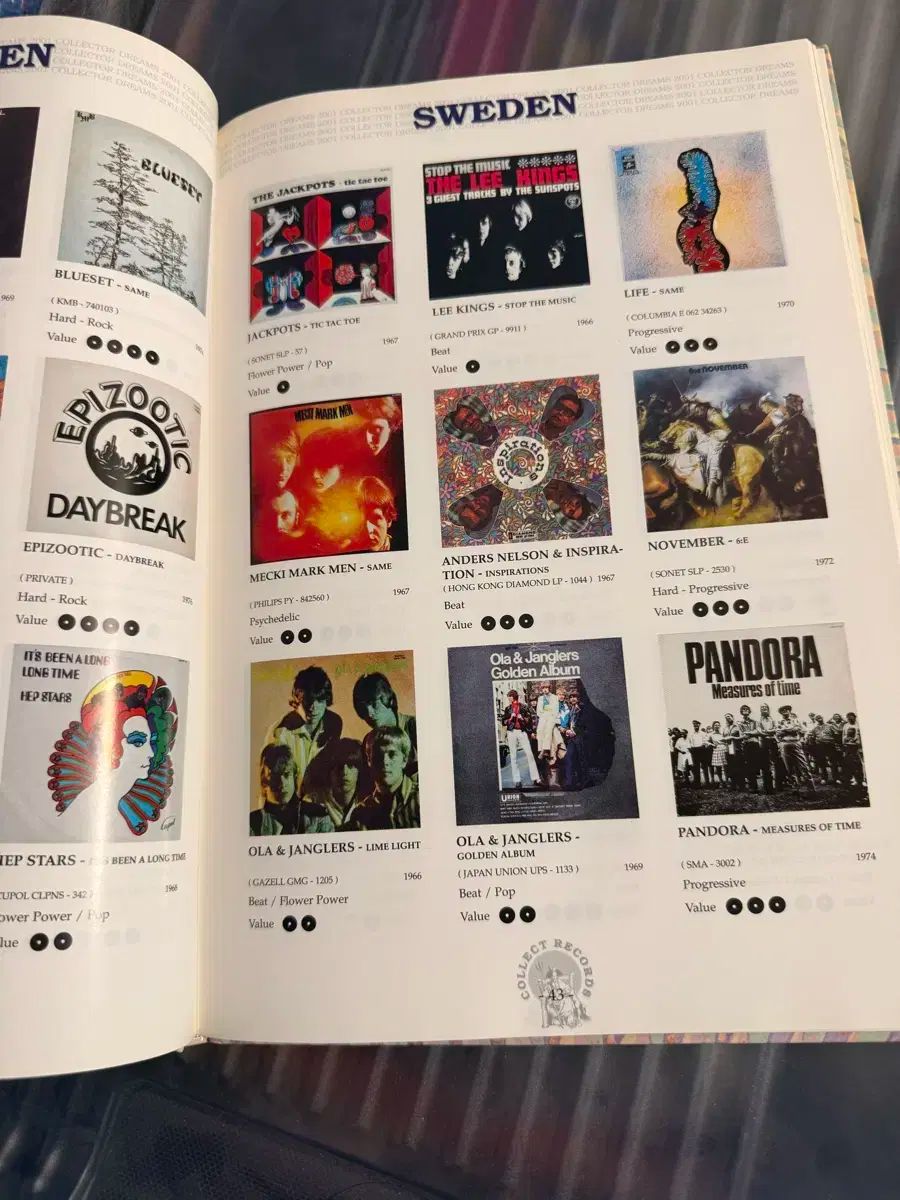世界的に有名なLPレコードコレクターHans Pokoraが発刊したレア音盤リストを収めた「Record Collector Dreams 4001」という本です。全世界の様々な国の音盤と、様々なジャンル(Folk, Psychedelic, Garage Rockなど)の音盤のカラーイメージと、レア度によって星の数で表示されているのが興味深いです。韓国のレア音盤も収録されています。