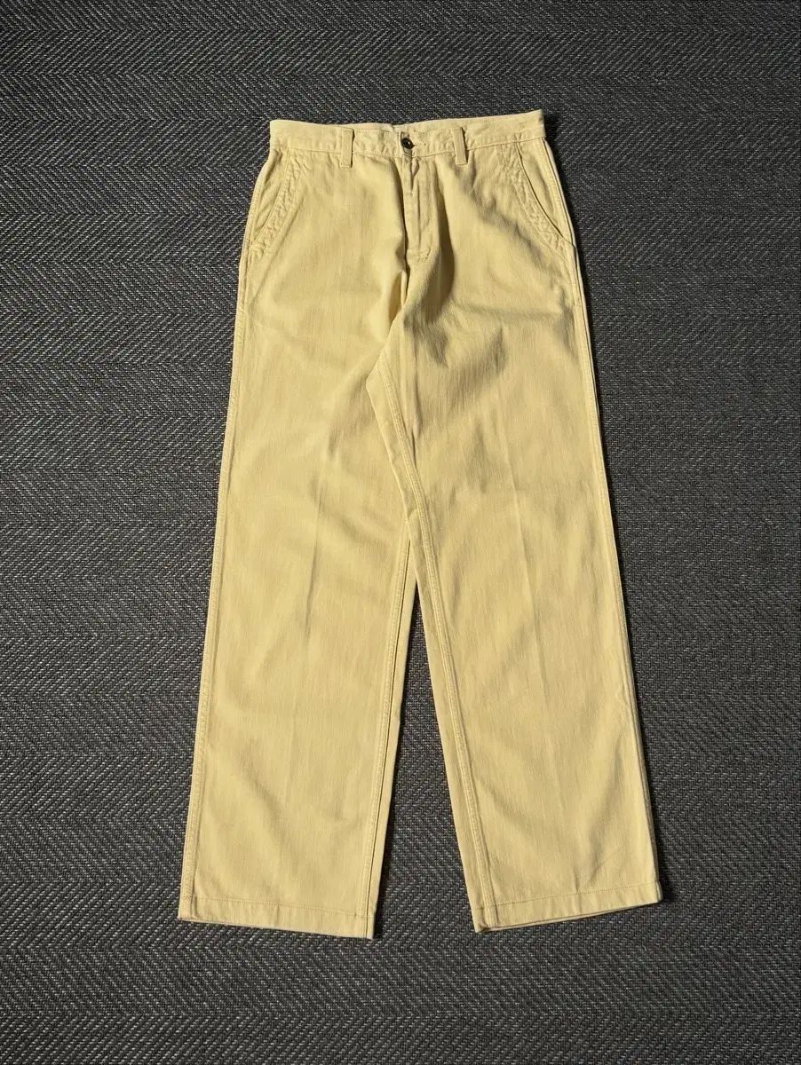 アメリカのワークウェアブランドの本格的な感性を感じられるSchott N.Y.C.のコットンパンツです。ほのかなペールイエローCOLORが特徴で、しっかりとしていながらも柔軟なコットンツイル生地で製作されており、着用時に自然に流れるシルエットが際立ちます。