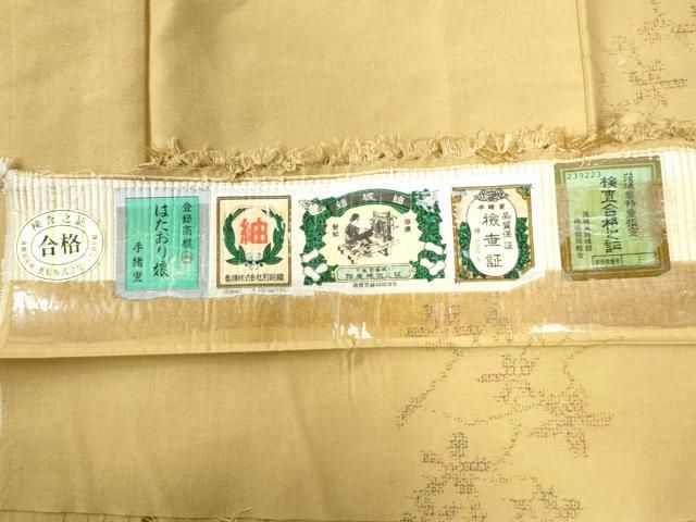 平和屋着物 結城紬 奥順 はたおり娘 100亀甲 飛び亀甲柄 枝花文 やまと誂製 証紙付き 正絹 yc