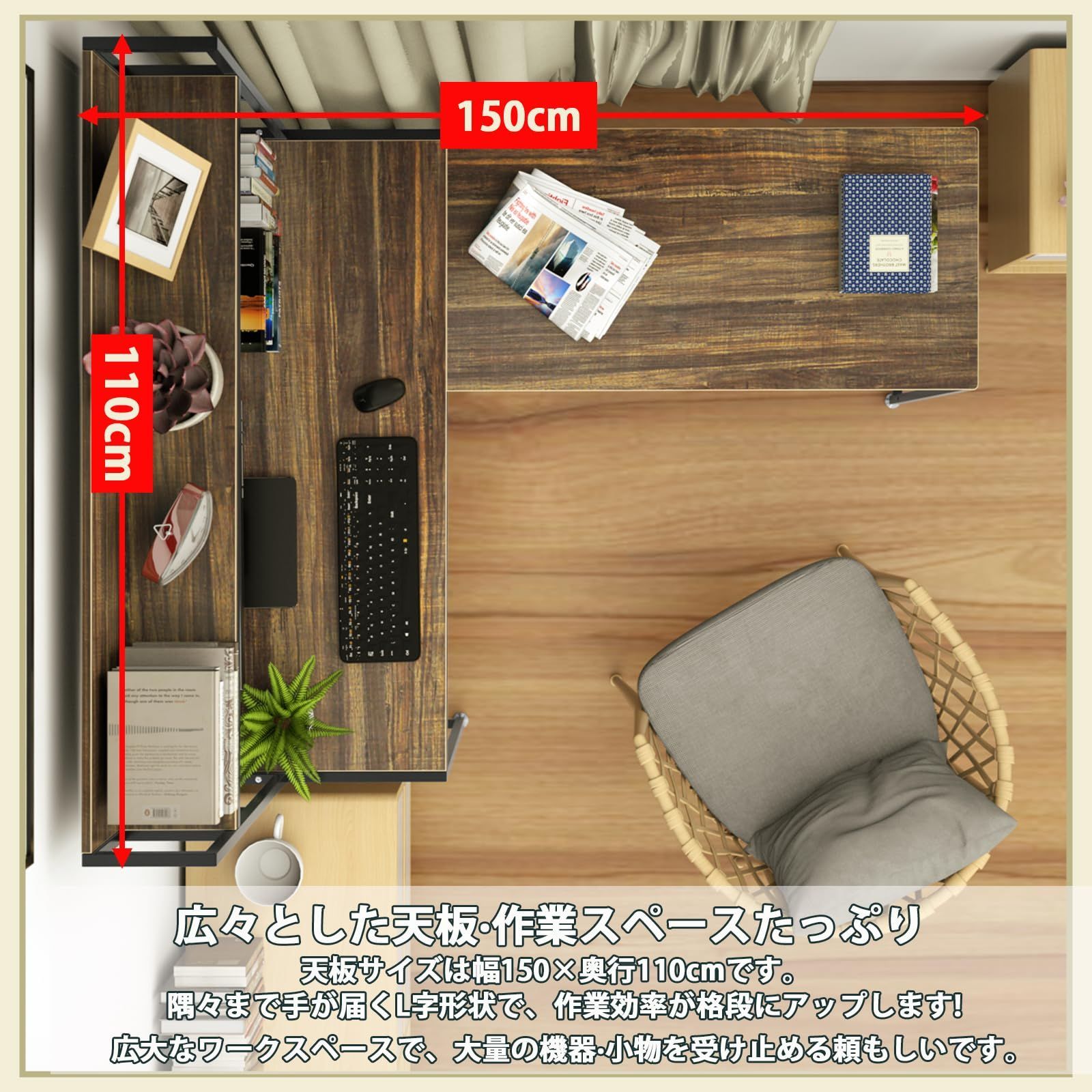 数量 幅150 cm パソコンデスク ラック付きデスク 左右入替 ワークデスク pcデスク テレワーク用 コーナーデスク L字型 机 ゲーミングデスク モニターアーム対応 勉強机 収納ラック付き 学習机 オフィスデスク 木製 l字デスク メラミン加工