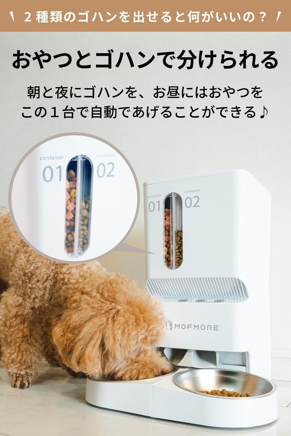 2種類のゴハンが出せる MOFMORE 自動給餌器 猫 2匹 多頭飼い 餌 自動 ペット 自動えさやり器 犬 5 L大容量 タイマー式 簡単設定 モフモア