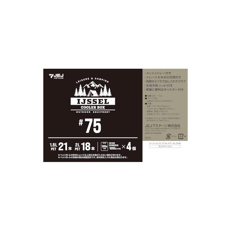 JEJアステージ アウトドアシーンに映える クーラーボックス アイセル サンドベージュ 72 L 幅880×奥行410×高さ389 mm トレー付き 保冷 軽量 メッシュトレー付 アウトドア 水抜き栓付 お出かけ 投入口付 スポーツ 釣り キャスター付