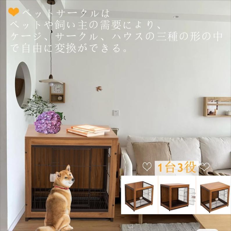 【1台3役犬 ゲージ 取り外し可能な屋根】 このペットサークルはペットや飼い主の需要により、ケージ、サークル、ハウスの三種の形の中で自由に変換ができる。天板には物を置くことができるので、わんちゃん専用アイテムを1か所にまとめて置いておけます。