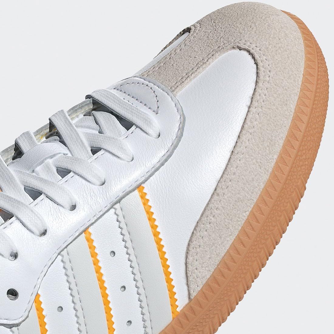 OGシューズは、ガムラバーアウトソールとギザギザのスリーストライプスで、クラシックにオマージュを捧げるもの。カラーライニングやパーフォレーションなどのさりげないデザインディテールが、ルックスをワンランクアップしてくれる。