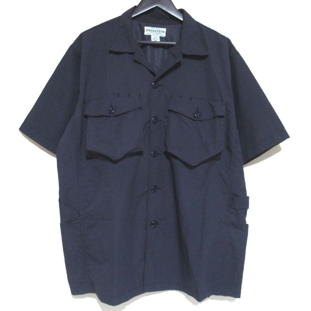 【商品名】SASSAFRAS ササフラス ショートスリーブ オープンカラー ナイロンシャツ XLサイズ ネイビー
