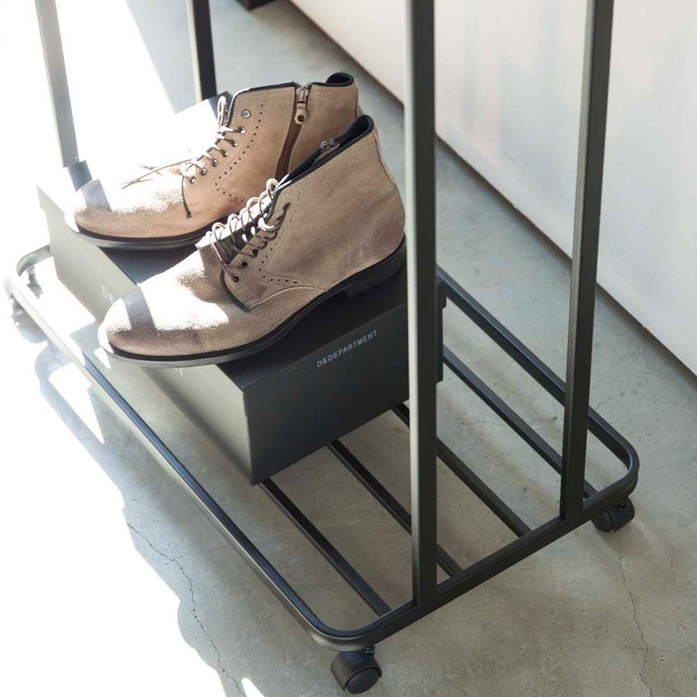 ハンガーを前後2列のダブル掛けで、衣類の収納力を増やしてくれるコートハンガー。台座はバッグやシューズの収納に便利です。キャスター付きなので掃除の際の移動もスムーズです。前後2列のダブル掛けで収納力が約1.5倍になります。