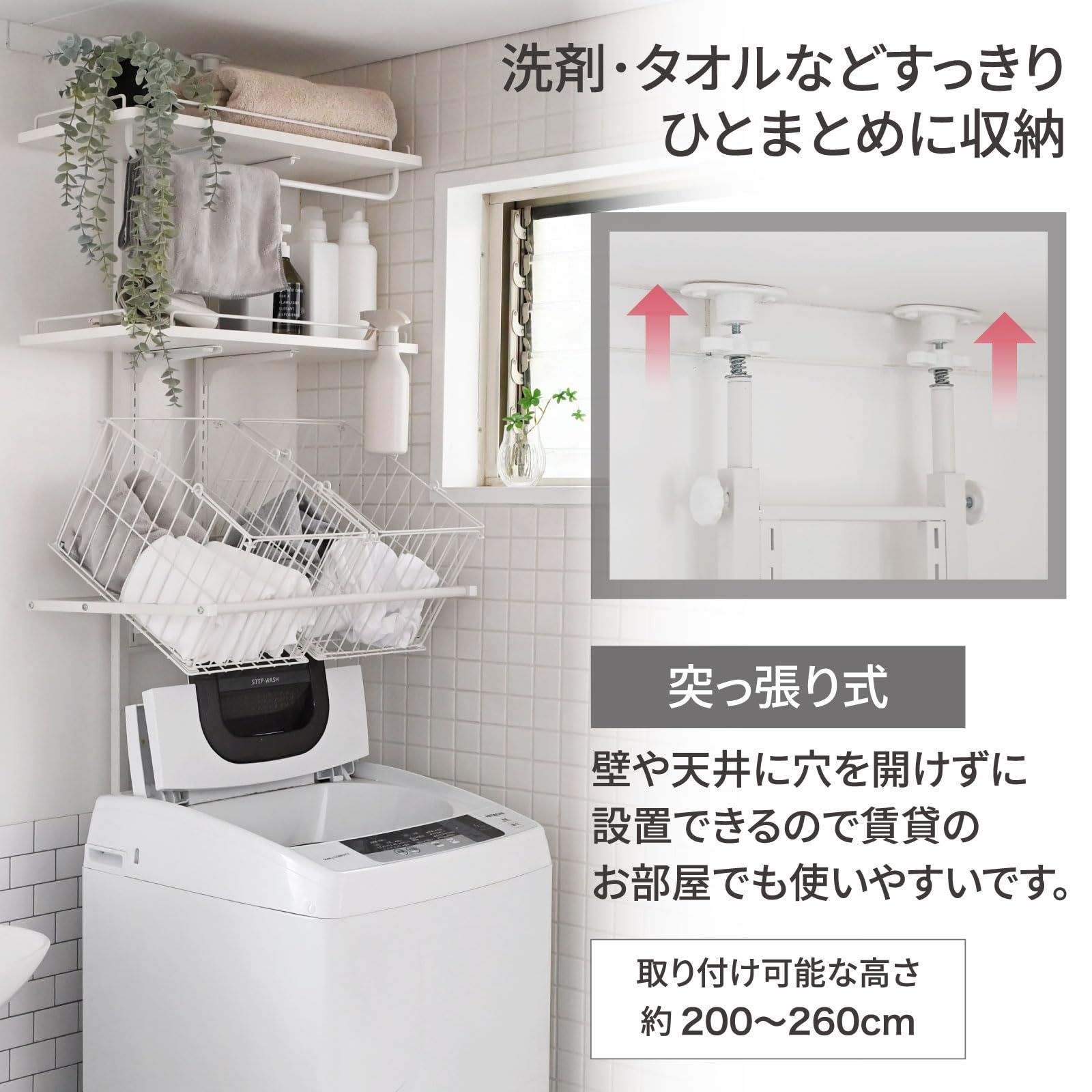 [山善] 突っ張り ラック ランドリーラック 洗濯機ラック バスケット付き 床置き 洗濯パン対応 棚板高さ調節 省スペース 幅60×奥行45×高さ200-260cm 棚 収納 洗面所 脱衣所 組立品 ホワイト/マットホワイト RTLR-6040B(WH/MWH)