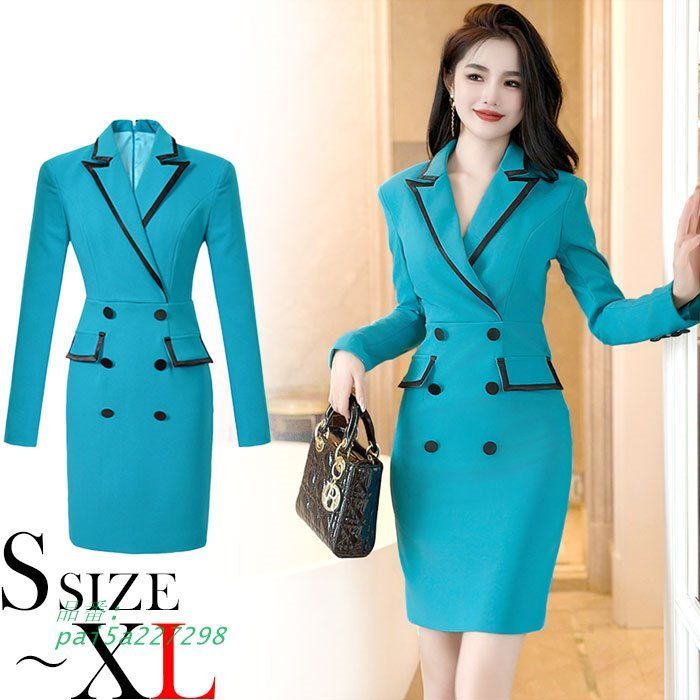 大きめ襟カシュクールVネック 長袖ジャケットスーツ風 ショートワンピース 青 キャバ スナック 服 韓国 ラウンジ レディース pai 5 a 227298