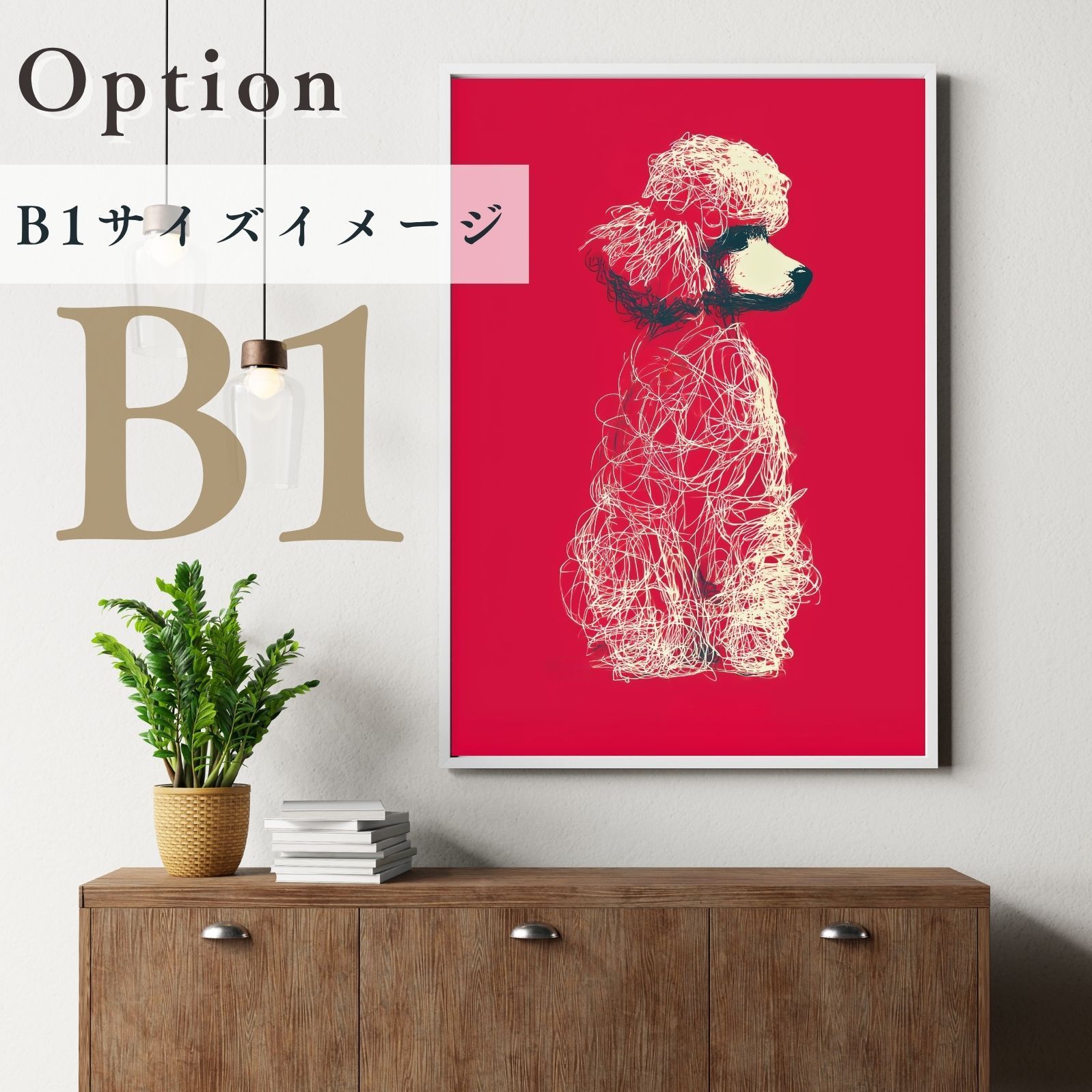 名入れOK Red Line - トイプードル犬 No.3 アートポスター ペットロス 北欧モダン ミニマルインテリア カフェスタイル