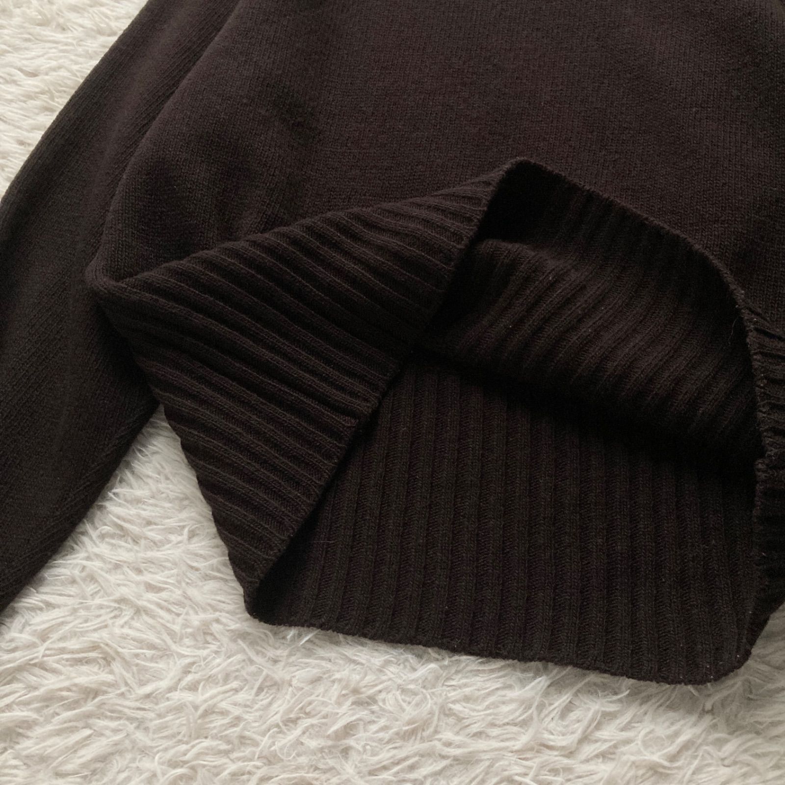 マックスマーラ WEEKEND LINE の上質バージンウール100%を使用した、暖かく肌触りの良いニットです。シックな焦げ茶色でどんなボトムスとも合わせやすく、リブ編みがスタイルを綺麗に見せます。