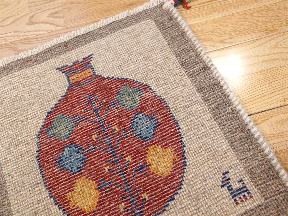ペルシャ ギャッベ ミニマット ラグ 横40 x 40㎝ 袋にザクロの実の絵 T 8538