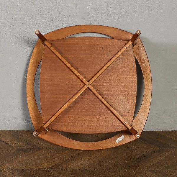褐色のチーク材とスモークガラスのコントラストが目を惹く、洗練された佇まいのコーヒーテーブル。北欧の年代物とも相性の良い上質なヴィンテージファニチャーです。
