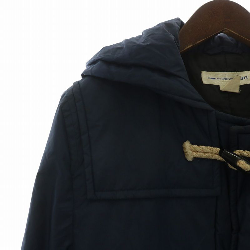 コムデギャルソンシャツ COMME des GARCONS SHIRT ダッフルコート アウター 中綿 ナイロン ミドル フード トグルボタン M 紺 ネイビー W 17901 XZ GY 19