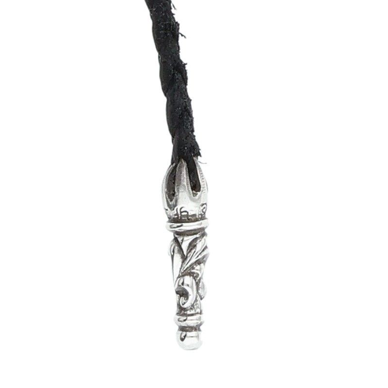 クロムハーツ LEATHER BRAID スクロールレザーブレード シルバーネックレス メンズ