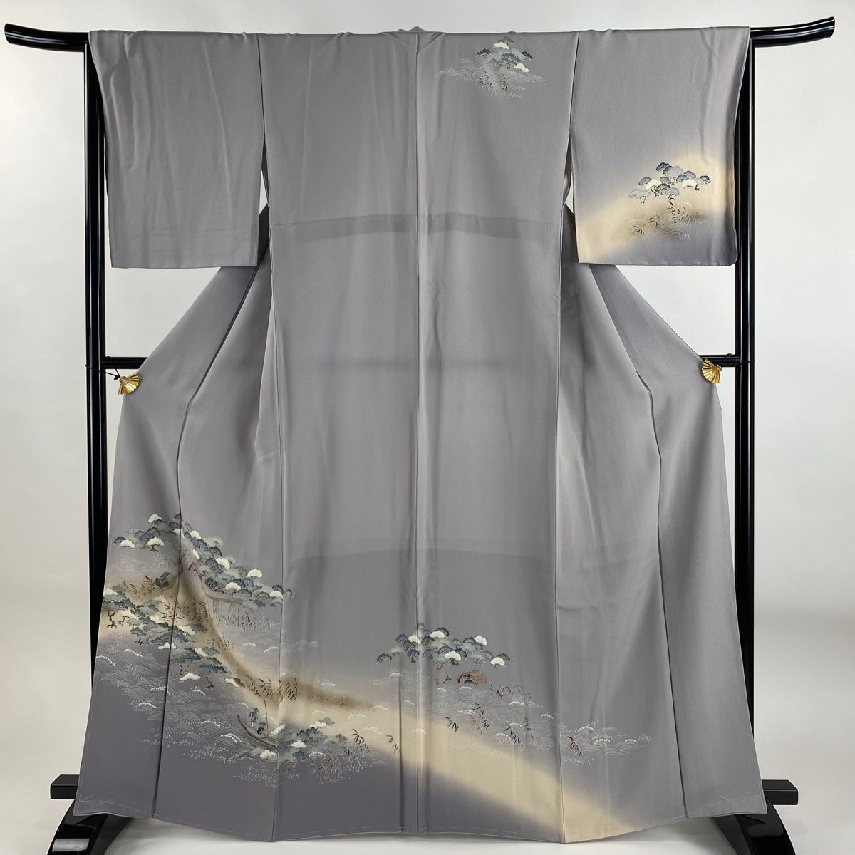 訪問着 身丈164 cm 裄丈66 M 袷 松 波 金彩 灰紫 正絹 秀品