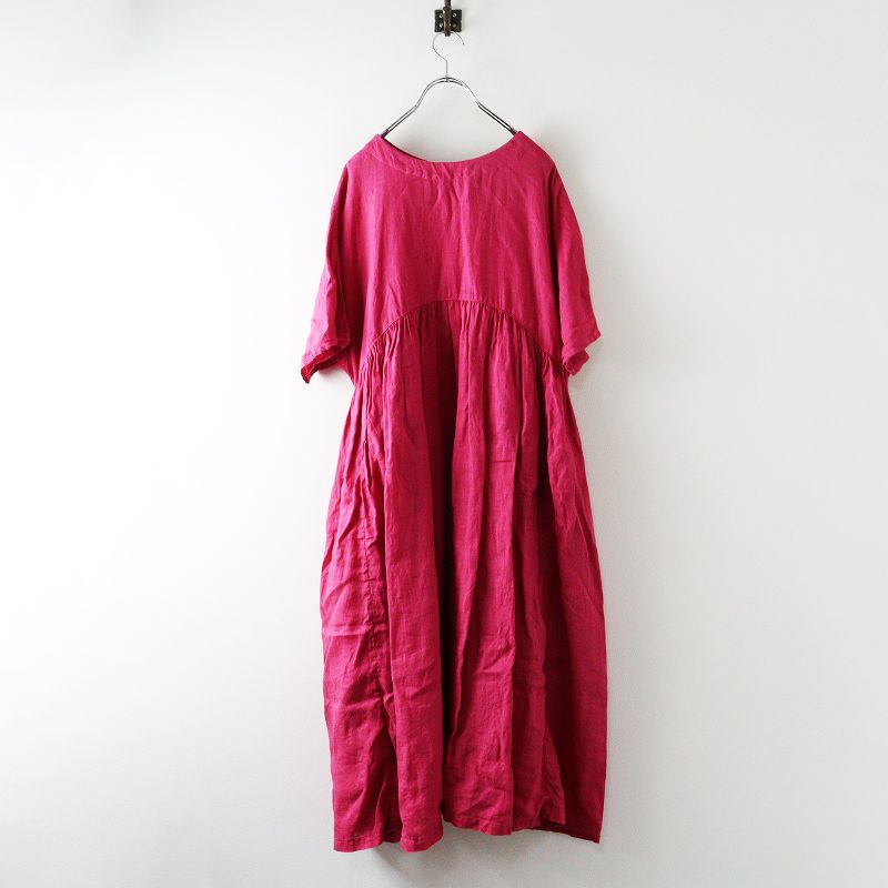 2025 SS ネストローブ nest Robe リネン天然染めラウンド切り替え2 wayワンピース F ピンク ドレス 前後着 フ