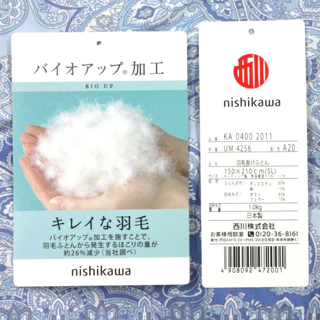 西川羽毛掛けふとん シングル ブルー ダウン85%