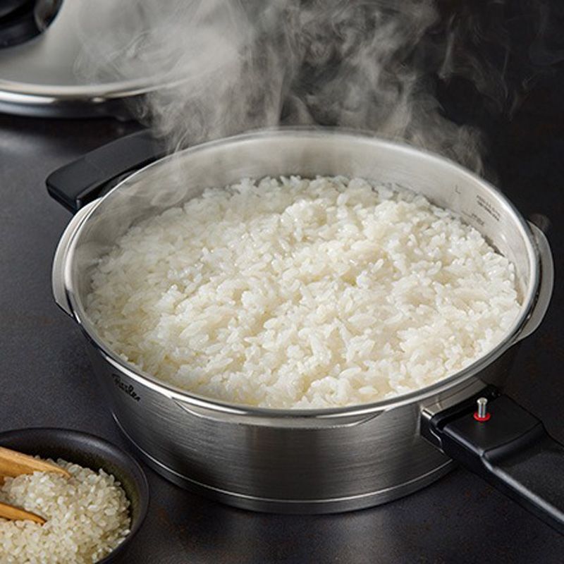フィスラーを象徴するプレミアムモデル3段階の圧力設定とスチーム機能で食材ごとの美味しさを引き出す
