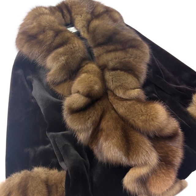 カルヴェン CARVEN ロシアンセーブル シェアードミンク SABLE MINK 毛皮 コート フリル デザイン リアルファー ブラック ブラウン 13-15 AR L-LL相当