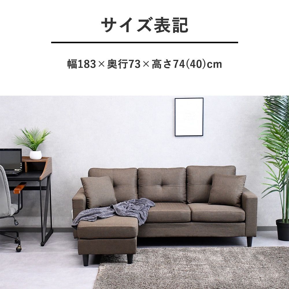 カウチソファー 3人掛け オットマン付き ソファー クッション付き カバー取り外し 3人掛けソファー ファブリック素材 l字 L字ソファ コーナーソファー ソファ
