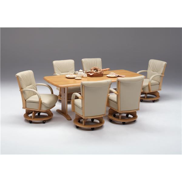 ダイニングセット 7点セット 幅180 cm ナチュラル ダイニングテーブル 回転 ダイニングチェア×6脚 木製 リビング 玄関渡し