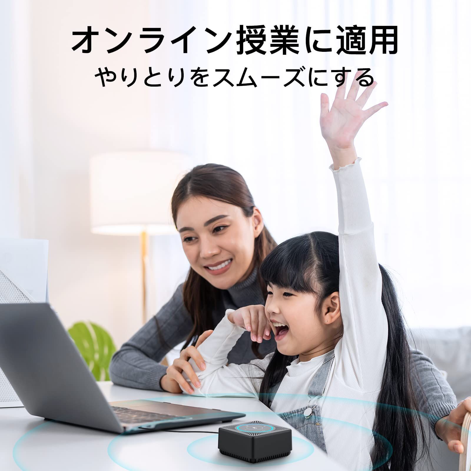 接続が簡単・Plug&Play複雑な初期設定やドライバをダンロードする必要がなく、USBケーブルでパソコンやラップトップを接続すると、瞬時に遠隔会議を行える。オンライン授業をしている子供と家族と通話をしている高齢者にも使いやすいEMEET M0スピーカーフォン。