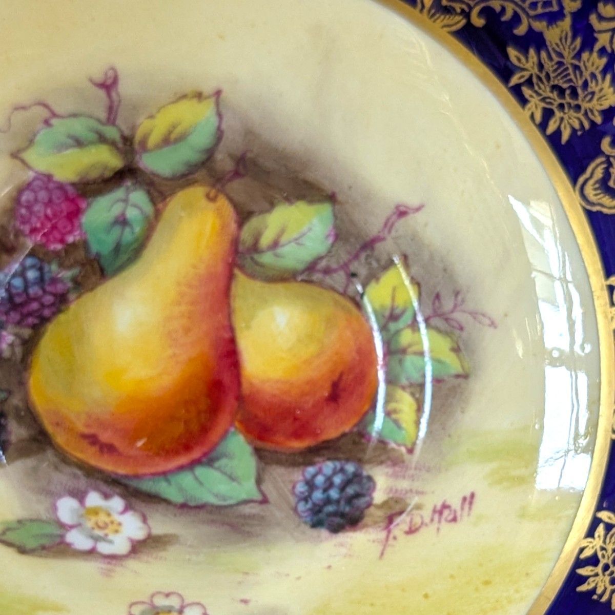 パラゴン Paragon 果実文 コバルトブルー&金彩 ティーセット4点 F.D.ホール&J.ウォーターズサイン 王室御用達 1017
