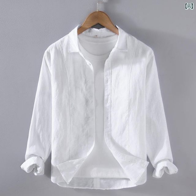 2 XL メンズ ファッション 服 男性用 オシャレ シンプル 大人 かっこいい 大きいサイズ ストリート 紳士服 先染め リネン シャツ ジャケット カジュアル 無地 生地